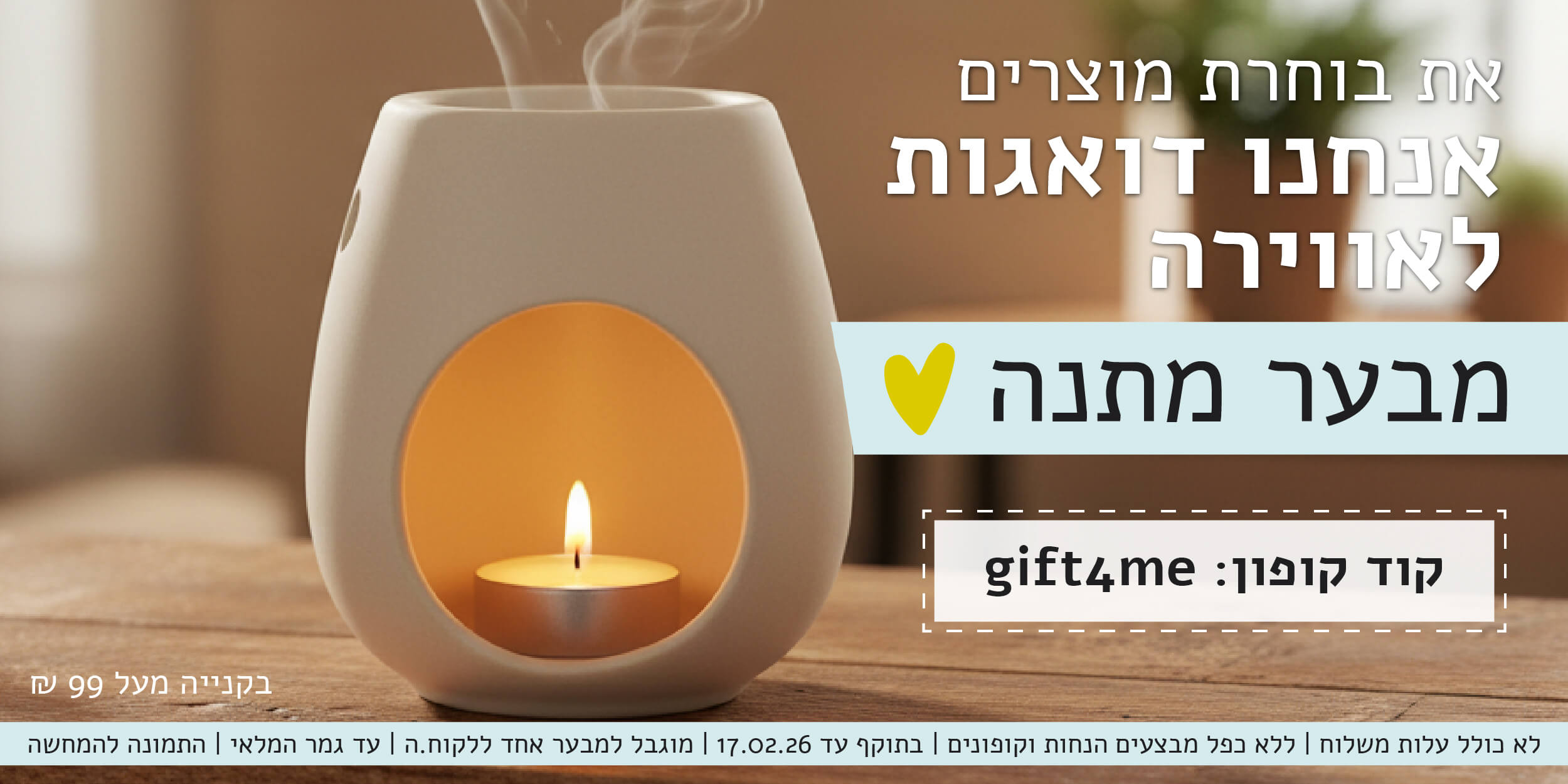 ברכישה מעל 250 ₪ (לאחר מימוש הנחות ושוברים)